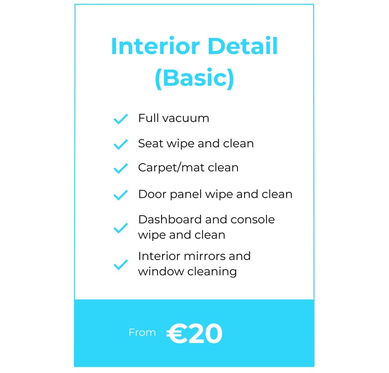Explore our range of professional mobile car detailing services designed to restore and protect your vehicle, inside and out.